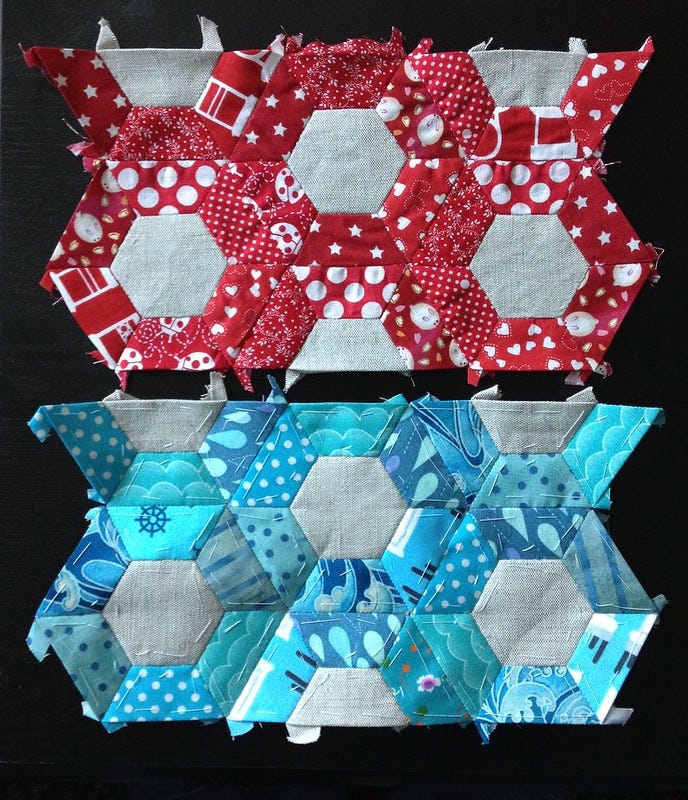 My EPP "Feels Like Spring" swap also got underway while I was away so I have made these since getting back using 1" hexagons.