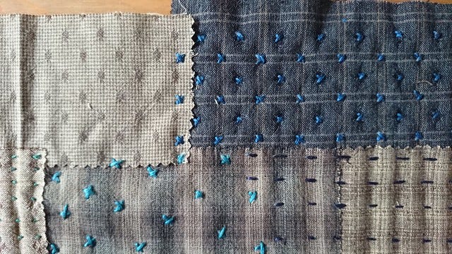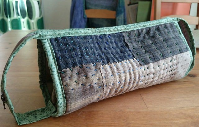 I really like how it turned out. I didn't use any traditional patterns so the embroidery is a bit random. I used scraps of traditional japanese fabrics and used the embroidery to secure them to a felt backing.