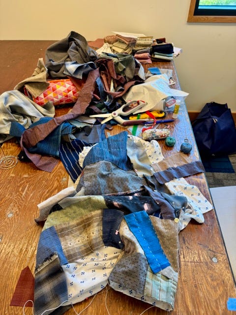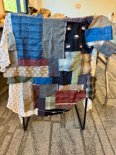 I definitely need to take that blue strip off the sleeve on the right, but other than that I am very happy with it. It’s all big stitch quilting and similar to Kawandi, but different.