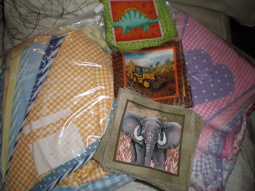 The big one is ideally for a bag for the wedding but I don't know if I'll have time now. There are more of the other ones. Aren't those tiny ones sweet? That's the same size I used to make this tiny one for a swap a month or two ago.