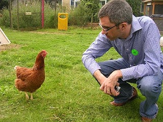 Then finally here is Pooch on our honeymoon, communing with nature in the form of a chicken which took to following us around for a while. We were actually at the domestic fowl trust looking at all the rare chickens and it was awesome. I have about a zillion photos of chickens should anyone care to have a gander (fnah fnah, well, this might seem funnier if I had mentioned earlier that there were geese too).