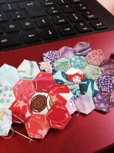 I don't know what I'm making. All I know is that those hexagons are 1/3". It is the only thing I do at the moment that doesn't require decisions.