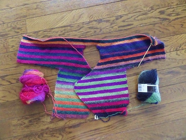 In addition I have cast on and half done a wrap cardigan for the Jbola Virus since the wrap cardi I made when she was a tiny one went down very well. Again I'm using a Drops pattern and I'm even using the recommended yarn - Drops Delight - which I complained about a few posts ago. Although of course I'm striping them.