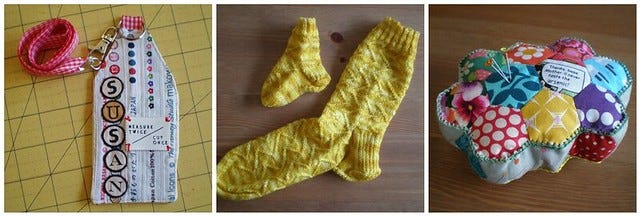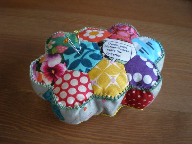 I also made a pin cushion for the EPP Early Summer Swap which needs to be sent by Monday. Must get on with that.