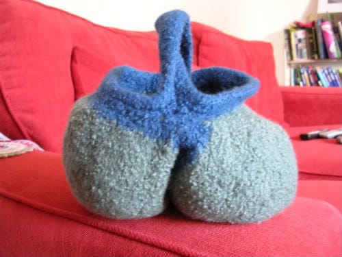 I think there are two things - the breadth of crafts I blog about and my writing about when it all goes wrong. The example of the latter which comes most readily to mind is my blogpost containing the words "malformed buttocks" used to describe a felted mobius basket I made. The pictures of that post don't seem to have made it through from 2010 so I reproduce here, just for you, this poor article in all its glory.