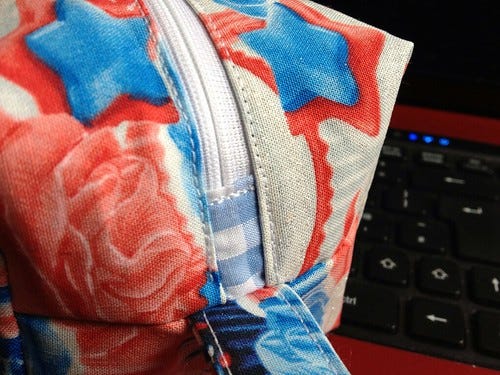 I overdid the interfacing but apart from that it is SOOOOO fricking cutely perfect. I want to rock it in my arms like a baby. Ahem. I followed this tutorial exactly apart from adding covers to the ends of the zips, which I learnt from the zipped pouches blogged about here.