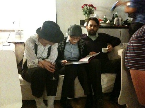 I also went to an Elderly Lady Tea Party yesterday. I was advised it would be drinking gin from teacups but I'm more of a sherry woman myself. I haven't got a picture of what I was wearing but I did snap these three on the sofa.