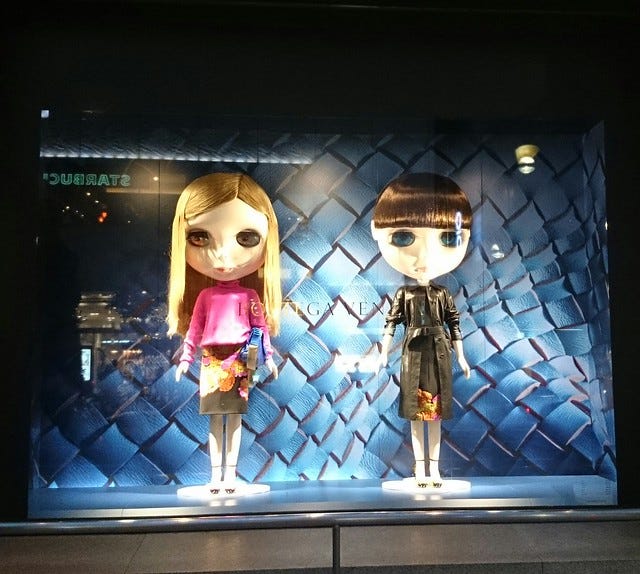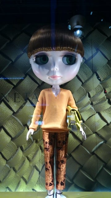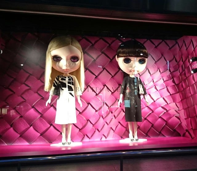 They were there to advertise Bottega Veneta handbags so the only items of relevance to the advertising part of this were the bags the dolls are holding.