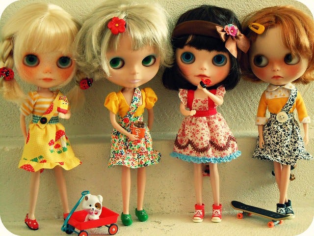 Have you heard of these dolls? They tend to be a bit like marmite - for non-british readers that means you either love or hate them. Here are just a few photos of Flickr of some. Lots more here.