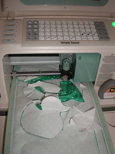 I'd bought a new blade and done much research into how to cut fabric with one. I followed one tutorial, much encouraged by her description of it "cutting like butter". Mine cut more like a sword made out of modelling balloons.