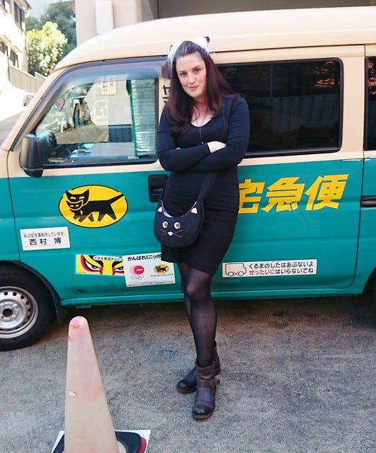 The van is for the most common delivery company in Japan and just happened to be outside when we were leaving. Pooch went for the completely-not-dressed-up look, as per, but coped very well with being accompanied by a wife sporting cat ears as we ate lunch at a pizza restaurant and traversed the metro. When we got there it was like I was finally meeting with My People.