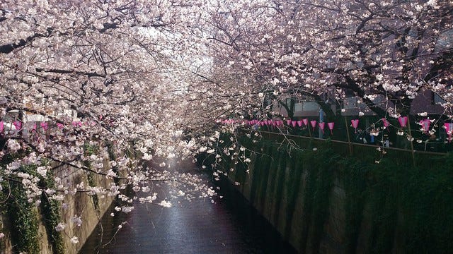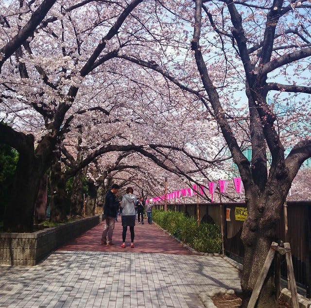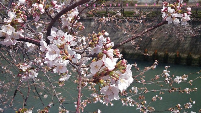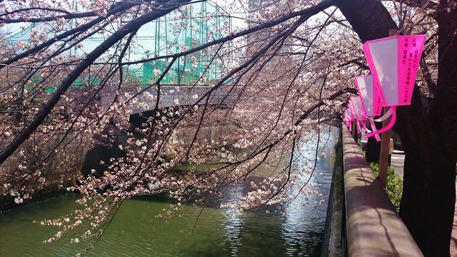 The blossom is just starting to come out. Everything in the shops has been blossom themed for weeks but this is the actual event. Pooch and I went to drink it in by walking along the river at Nekameguro, about 25 minutes walk from here.