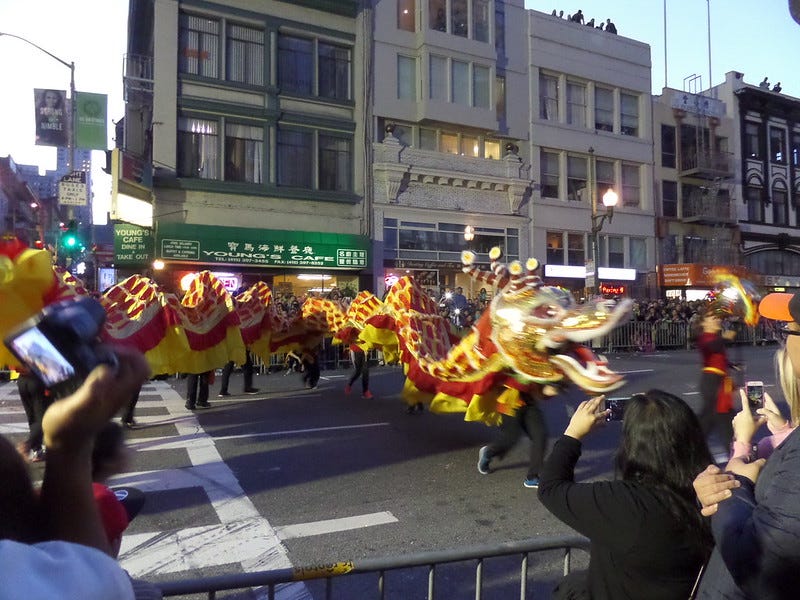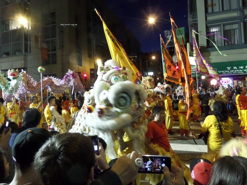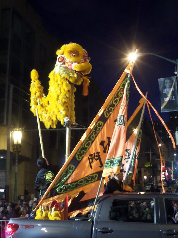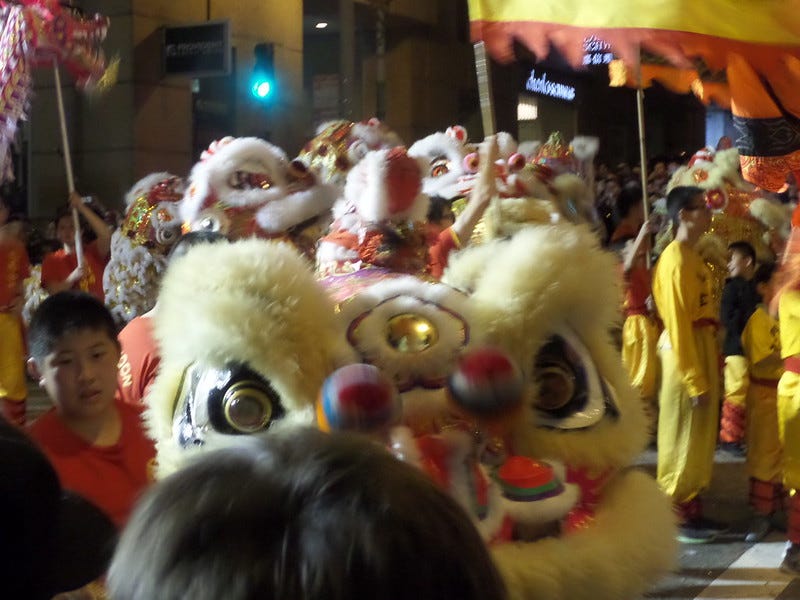 This was my first ever chinese new year parade. I am sure there must have been one in Tokyo but I seem to have missed it. This one is quite epic - even Pooch came along.