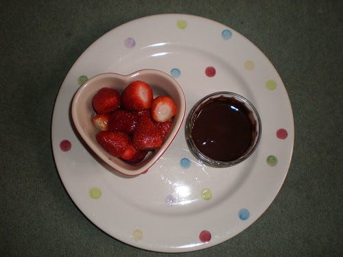 This simple sauce takes less than 2 mins in the microwave and is good on fruit and, for the true sugarholic, marshmallows!
