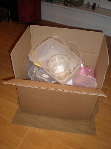 While actually using the kitchen I had a dig through the cupboard and pulled out all the tupperware. Considering I never seem to be able to find any when I want it we seem to have collected quite a lot. This is not a small box.