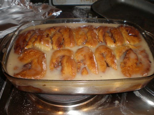 The recipe is for twice this many so I duly halved the amounts and ended up with a dough that, once risen, had the consistency of custard, which is hardly condusive to kneeding. So I had to add about twice as much flour as the recipe suggests. But man, they still tasted gooooooood. I took half into work for the boys and they were highly appreciative. The coffee in the icing really does bring out the maple syrup. Nom.