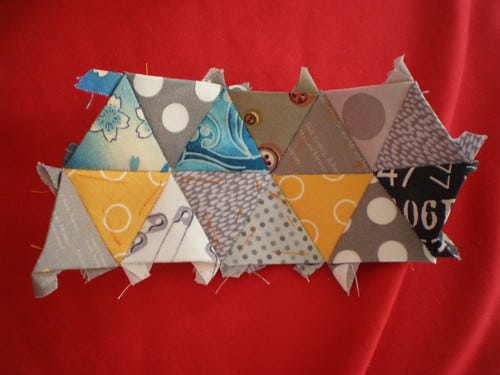 The english paper pieced pouch swap has started and having never done triangles before I thought I'd give them a go. I do love a nice tessellation.