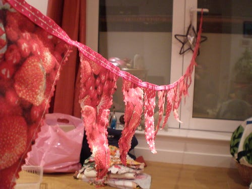 I've also been thinking about bunting or something like that. I made some for people at xmas.