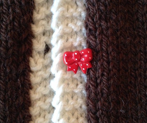 The design is a combination of two free fairisle patterns on Ravelry plus my handwriting and done using intarsia. The buttons were worth the wait.