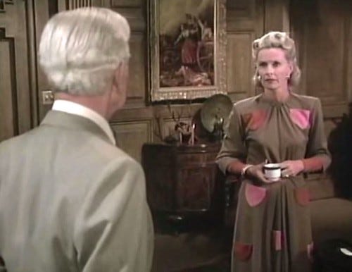 Vintage updo, dramatic expressions, all fine. Pockets on your shoulders - fair enough. Then she stood up.
