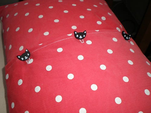 Yes - I dared to Dresden! Having been so subdued with my colour choices on the front I let loose on the back. I've had these buttons in stash for years. So cute!