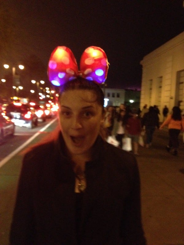Yesterday was my 37th birthday and, since it just so happens that it falls on one of America's biggest celebrations, Pooch and I ventured out for dinner and fireworks. Fog managed to dull the fireworks but not the flashing of my headwear!