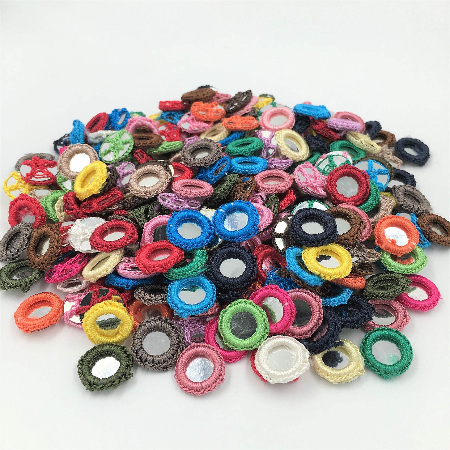 I was once again looking around for what to add to the quilt next when I remembered these shisha mirrors which I had bought for a project that never happened shortly after moving to San Francisco. 8 years and 3 moves later they were finally going to be used.