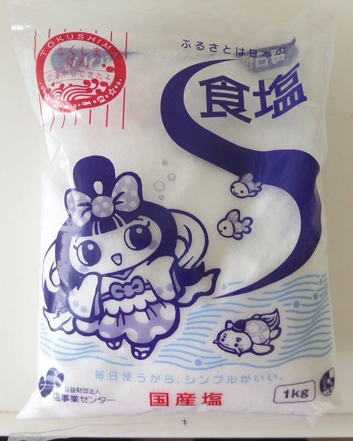 But, despite being bombarded daily with cuteness (even the spam porn pop-ups I get when downloading things are kawaii manga style), I was still taken aback by the kawaii nature of the bag of salt I bought for dyeing with.