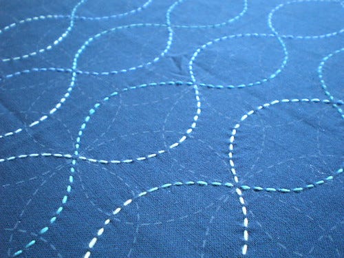 I haven't felt like doing much crafting this week other than plugging away on the popspots shawl. There are more than 500 stitches per row now so perhaps it makes sense that in contrast I've turned back to some Sashiko.