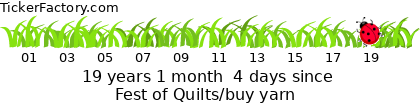 In fact, and this is even worse, I have the plymouths and some crochet hooks at Alex3's and have some sock yarn from both the sockhop site and ebay, god, AND CPU enterprises (link in menu on left) in the post AND I have three zimmermann books coming my way AND the yarn harlot's book arrived today and I also have vogue-shawls-to-go in the post so I'd be OK for a day or two. You see what I mean about it becoming an obsession. Where is that counter website thing. I'm so going to not spend anything else on knitting until.....after the festival of quilts on 18 August. (I can hear the stashalong people groaning and saying stuff like "big wow").