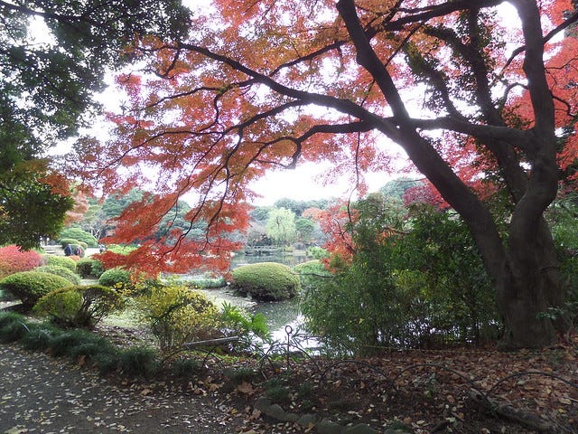 I consoled myself that there were still the lakes to look at and headed off for the 'Japanese Garden' (which does make sense in a Japanese park because some of it was formal french - whatever that is - and so on). It turns out they'd kept a little bit of the autumn colours for me.