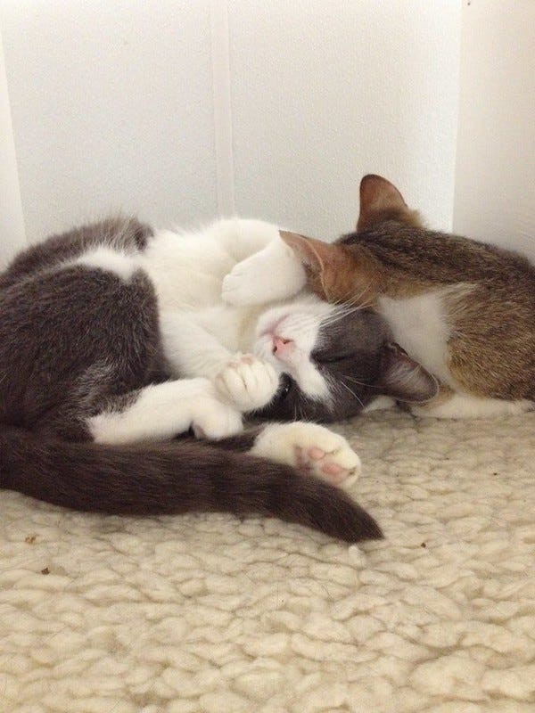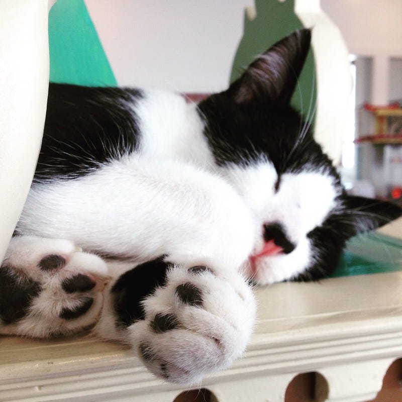 Is it bad to objectify cats like that? By commenting on their extremities? Meanwhile in the quiet room there was a lot of cuddling going on.