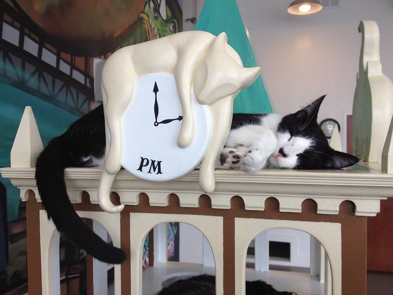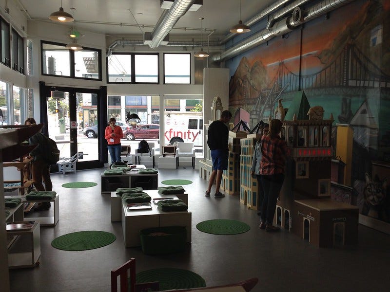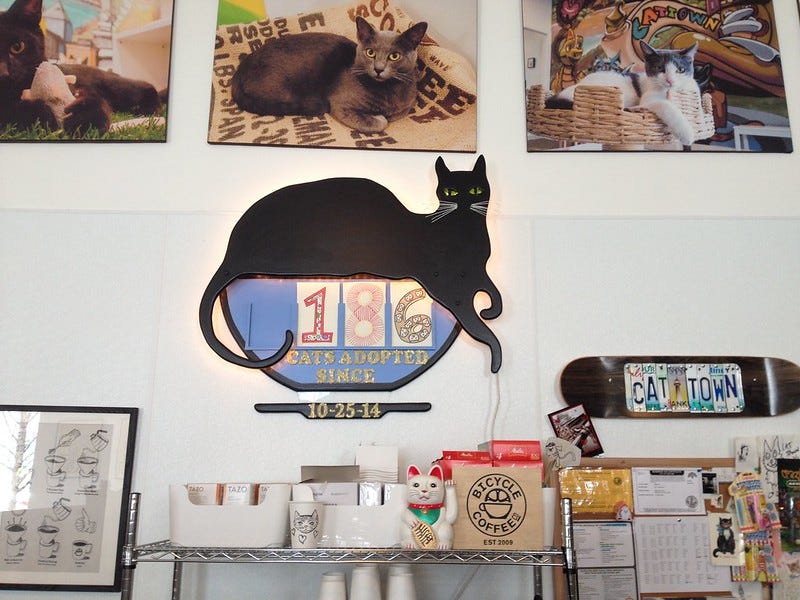 With my new job starting any minute now, I knew my visit to the Cat Town Cafe in Oakland last week might have to last me a little while. My visit started memorably when my Uber driver asked if it was ok if he came in with me to have a look since he was intrigued by the idea and had never heard of the area's speciality coffee house. He departed after grabbing a cup and I was left to enjoy the cats.