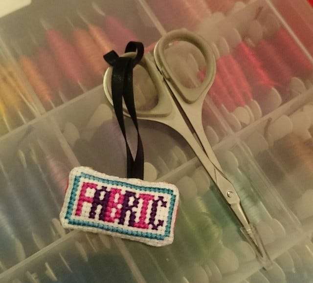 I had to take a trip to Shinjuku to get the zip and some other bits and I suspect that might be my last craft shopping until we leave. I treated myself to a very sharp pair of small scissors for snipping tiny bits. My 'fabric' fob on my fabric shears has been quite successful in getting Pooch not to use them in the kitchen (that and howling with pain whenever I've seen him picking them up). I therefore thought another one was in order. It is suitably tiny to match the scissors.