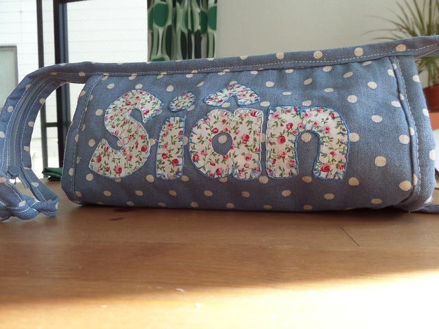 I also made another Sew Together Bag, this time for my sister Sian, mother of my beloved niece. I bought the blue dot linen especially since I know she'll like it.