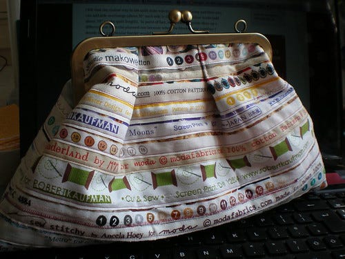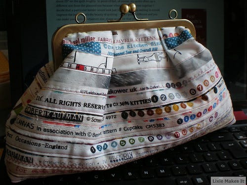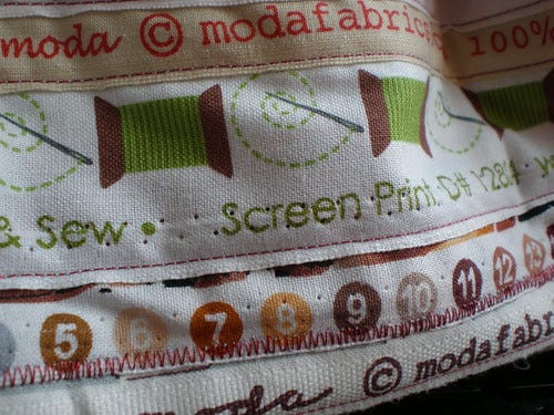 My other finish is a project where I wanted to make 'something' with the selvages I'd been hoarding. At the same time I started lining them up I found out...I am going to Tokyo on Tuesday! So I decided on a project bag.
