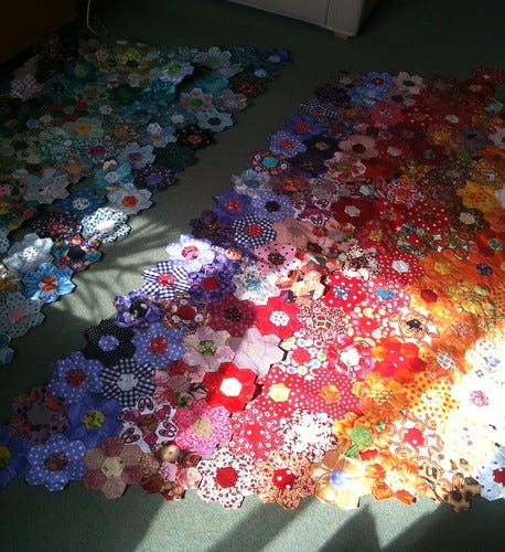 And lastly, awesome are the larger patchwork pieces I am making for my lampshade.