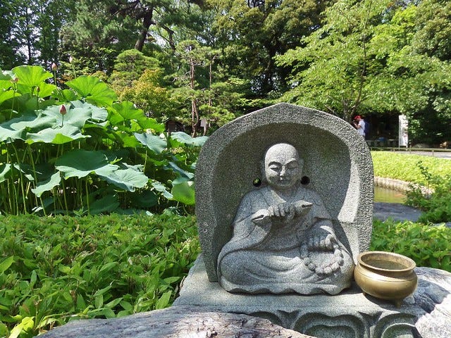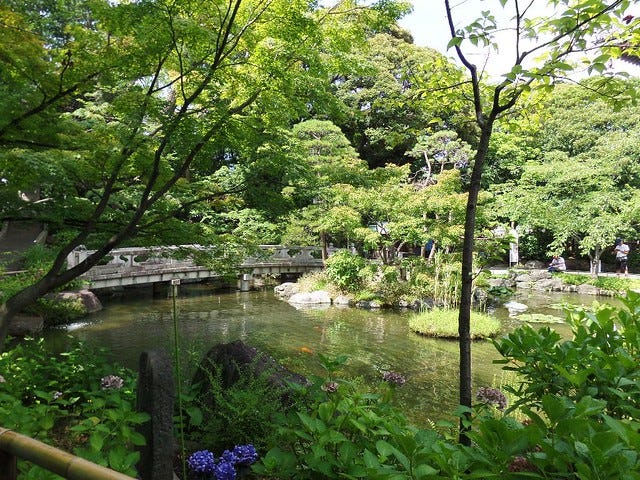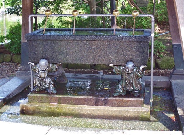 Nishiarai Daishi Temple, where this happened, is about an hour north of central Tokyo and is a 'working' temple with services going on in the background. The prayer chants and bonging of the gong along with the chime of the chimes and the sound of the waterfall in the garden ponds combined to be quite idyllic. I enjoyed all of them in a medley while watching the fish.