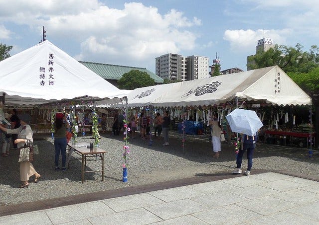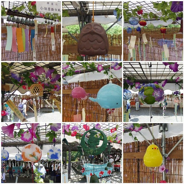 Those hanging up were essentially samples, grouped by artist, and you wrote down the number of the one/s you wanted and took that number to another booth to pay and take receipt of yours, suitably boxed. You can buy basic ones with a mass produced print in the 100 Yen shop and in fact I have one with goldfish on and it is very nice, but these were artisan ones. While most were glass there were also quite a few metal ones and others decorated with bamboo. The variety of decoration techniques was fascinating. They varied in price from about 500 yen to more than 5000 (about £30).