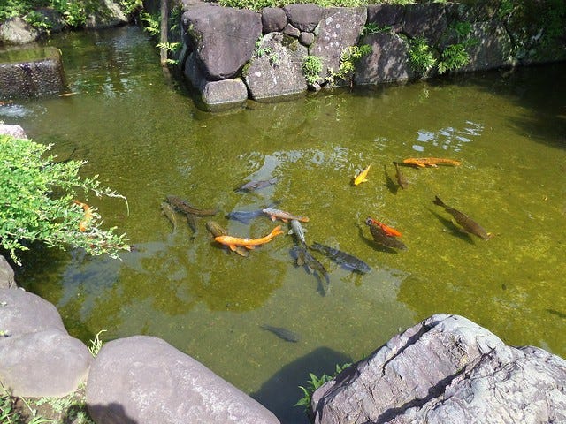 There were actually two gardens - this second one was away from the various noises although probably the most beautiful. It also had more fish and they ranged from minnows to huge beasts the size of a small dog.