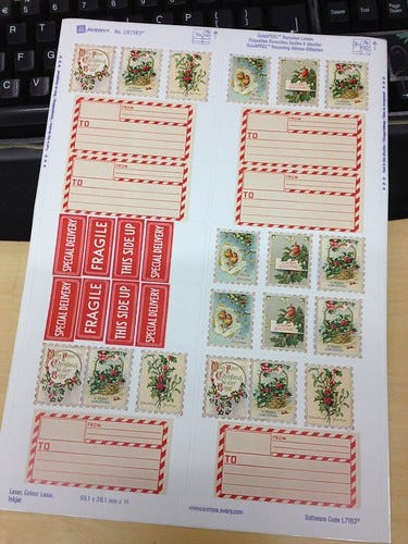 I've had it in the back on my mind since and so I used one of my work lunchtimes to do a little work on it. I don't know about you - but at my work Avery L7163 is our label of choice. 14 to a page and the right size for addresses.