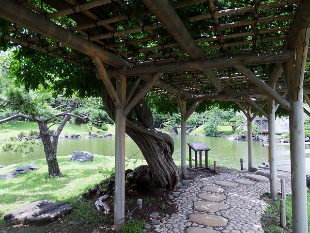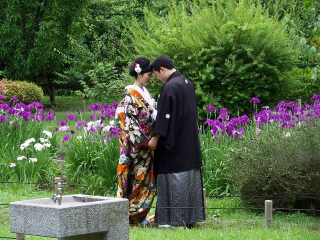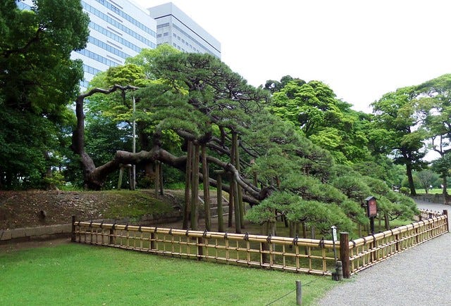 Those last two are the front and side view of a 300 year old pine. It's height is only 11ft but that main branch coming out at 90 degrees is 18 feet long and the breadth of the branches coming off it was, I dunno, 30 feet maybe? I should also explain that the kimono couple weren't just mooning about in the garden like that. They had a photographer and two attendants with them and were taking wedding photos. I thought I'd just nip in and capture the moment and help spread the love.