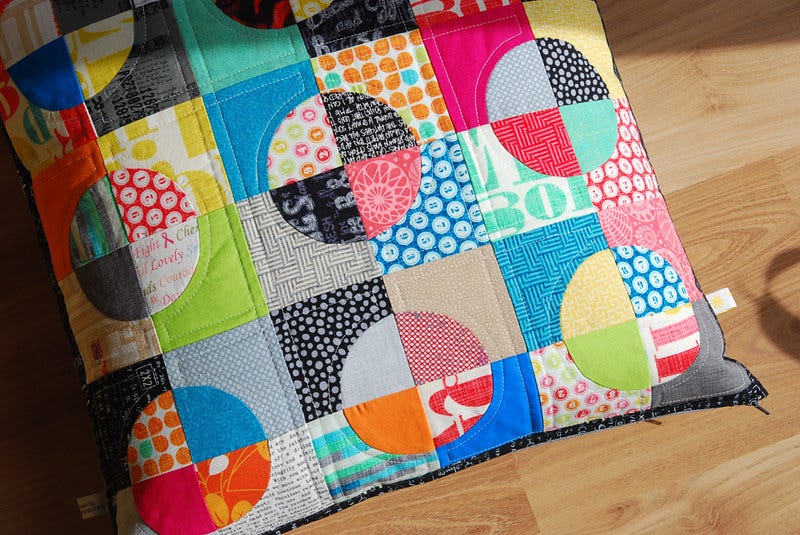 As for pattern, I plan to make use of the excellent Craftsy course "Playing with Curves" to make a drunkards path type quilt such as the one below, by Karen Ackva.