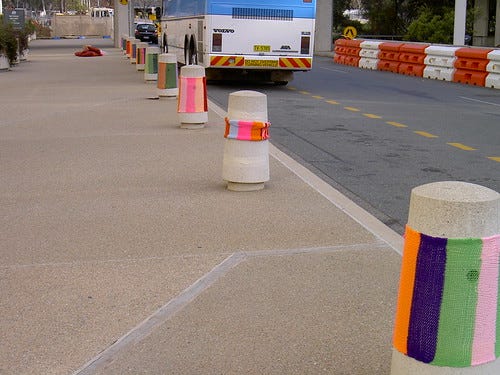 If you genuinely believe yarn bombing serves a useful purpose then you go for it.