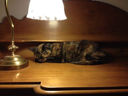 Artemis has chosen a new summer sleeping place away from the aga and makes it very clear when she wishes to go to bed. She hops up there and begins the most thorough wash any cat has ever performed before putting nose to paw. The chickens also take themselves up to bed in their little house at what they feel to be the appropriate time and then mutter to each other like old ladies until you come and shut the door.