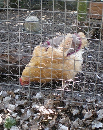 Just when things were getting weird I saw a chicken with a saddle.