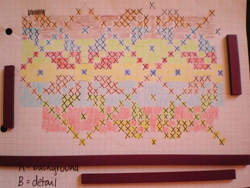 As it has been so hot this weekend it seemed only right to cast on a fairisle steeked cardigan in shetland wool. I have accumulated a fair old stash of Jamieson's from various projects and from buying a ball which turned out to be not quite the right shade about 20 times. So I've chosen a conventional all over pattern from Alice Starmore's "Charts for Colour Knitting" and divided it up into blocks of rows.