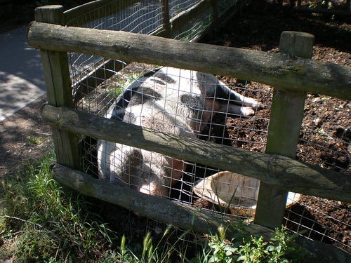 This was probably the third largest pig there. The biggest was a big pig. About 7 feet stretched out on the floor with it's head away from me. As I contemplated it, it farted.