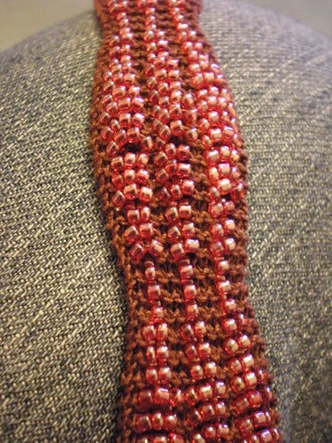 The pattern is free and is on Ravelry here. It is well written and let's face it - this is garter stitch, so the hardest thing about the whole project is threading the beads. But if you've got half an hour and a television it is soon done.