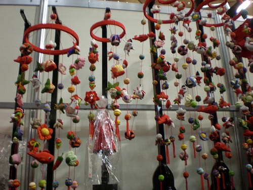 Quite a variety - washi box, jewellery, patchwork and more. And there are all those other projects on the go - the one block wonder patches waiting to be assembled into something. The blue/grey hexagons in traditional woven cottons waiting to be a bag, the jumper I'm knitting and then not to mention the projects I have planned. Quilts for two people, egyptian socks, various traditional japanese things including what I think are called Hinakazari decorations although I'm not sure of that. They look like this.